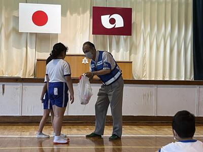 ②水筒⇒ランドセルの順で荷物を背負うこと。