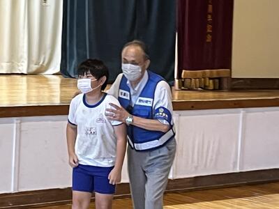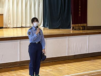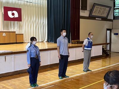 避難が終わり、体育館でお巡りさんから不審者対応として、以下のことをご指導いただきました。