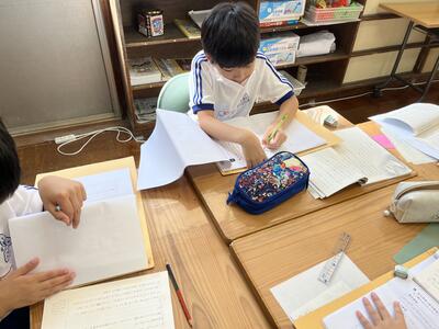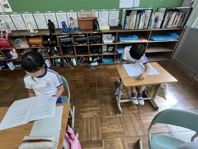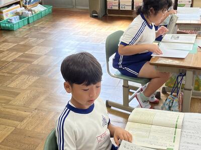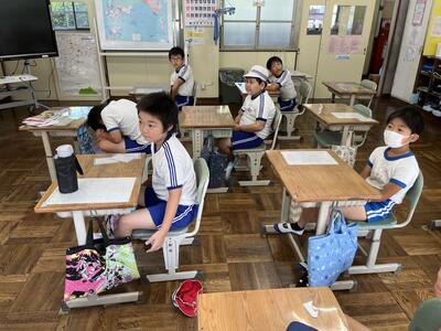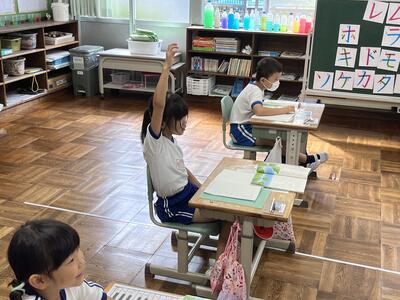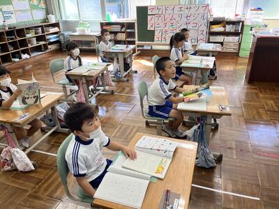 今日、1年生はカタカナを学習しました。「ジャングルジム」たくさんのカタカナが並んでいますが、上手に読むことができました。6年生は歴史の学習です。徳川家康について学習しました。2~5年生もそれぞれの学年の学習課題にしっかりと取り組むことができました。
