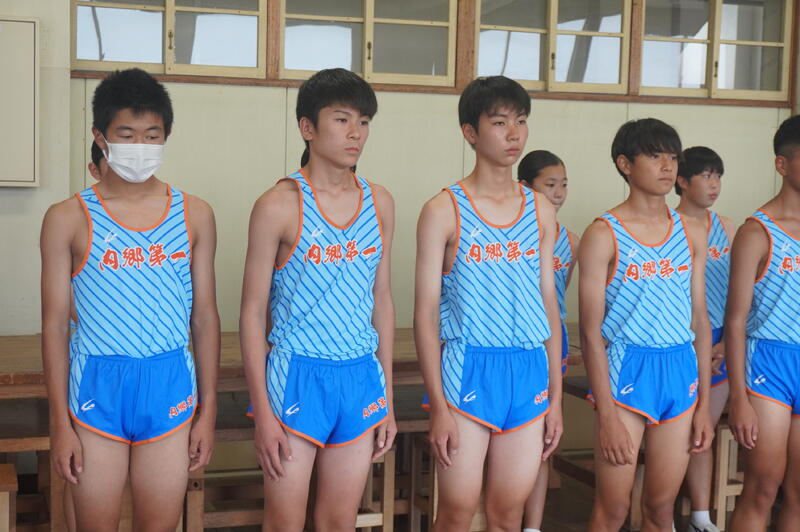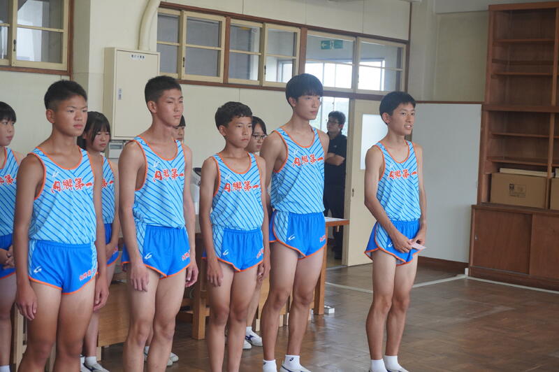 明日、21世紀の森公園で行われる「市中体連駅伝大会」に向けて、壮行会を行いました。