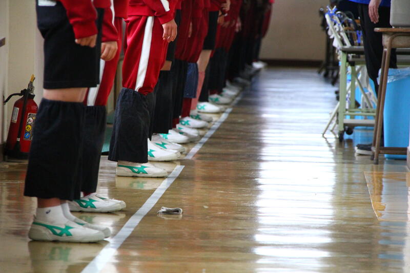 整列はつま先を白線にそろえて…心も揃う時間です。
