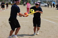 ボールでピンを倒し、次の走者へ! 意外と難しかったようです。