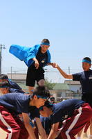 船頭役の生徒が、地面に落ちないよう馬(生徒)を渡っていきました。