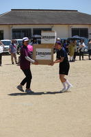 大中小の荷物を重ね、バランスを取りリレーしました。