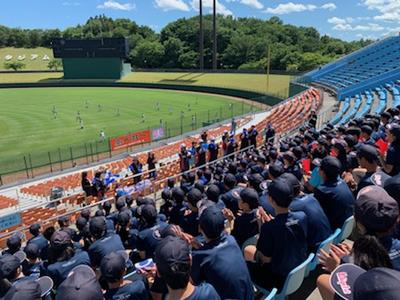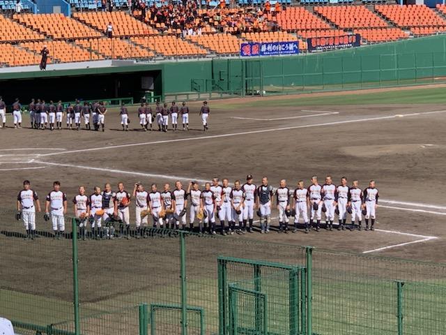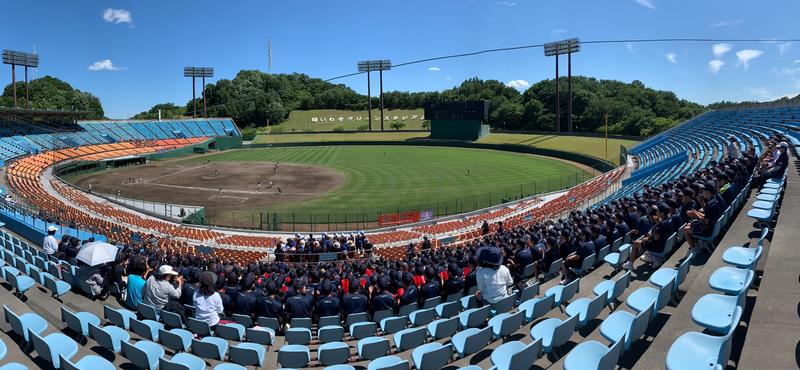 本校野球部が優勝しました!!全校生徒で会場に行って応援しました。ほとんどの生徒にとって球場で野球の試合を見るのは初めての経験でした。野球部のお父さん達から応援の仕方について教えていただき、一丸となって大きな声を出して応援しました。12年ぶりの優勝ということでとても盛り上がりました。野球部の皆さん、そして保護者の皆様おめでとうございます。県大会での更なる活躍を全校生徒、教職員で願っています。