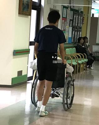 ◎ 介護の補助をする前に車椅子の練習を行いました。