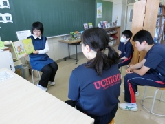 2016年6月2日 15時04分 学校司書の先生による読み聞かせが行われました。今回紹介された本は、「さるの先生とへびのかんごふさん」「ウェズレーの国」の2作品でした。実際に読んで聞かせていただいた後に、読み聞かせの秘訣や本の持ち方、見せ方、ページのめくり方、そして、声の大きさや感情等について教えてもらいました。本に親しむよい機会となったようです。