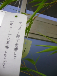 生徒たちは、真剣に願い事を書いていました。