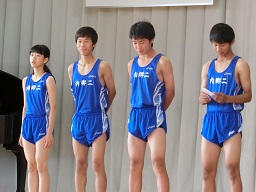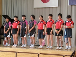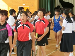 2017年6月28日 16時31分 県中体連陸上大会、総合大会に向けて選手壮行会が行われました。陸上に4名、総合大会には、女子ソフトテニス部が団体で出場します。内二プライドを励みに東北大会、全国大会出場めざしてがんばってほしいです。学校あげて応援しています。