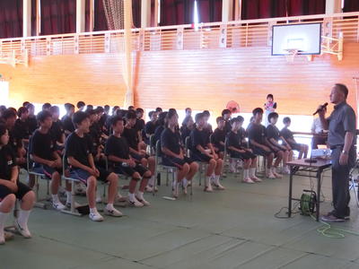 はじめに、「性」とは何かについてお話をされました。特に中学生の時期は、心と身体が大きく成長します。体つきも性別によって変化が顕著にあらわれます。これは、自分たちの子孫を残すための準備段階に入ったことを意味するそうです。そのような時に、正しい知識が無いと望まない妊娠や性感染症など恐ろしい病気にかかることを教えていただきました。次に性感染症の恐ろしさについては、一度かかると治りにくいことや生命に関わることも具体的な例をあげながら教えていただきました。最後に先生から次のようなメッセージをいただきました。「性」とは人が成長していくうえで必要な「生きる心」。自分を大切にし、異性の心や立場を思いやることで豊かな人間関係を築いていく生き方。