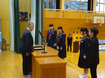 2020年1月8日 18時24分3学期の始業式が行われました。全校生徒の皆さんが元気に、笑顔で登校できて嬉しく思います。始業式では、各学年の代表が3学期の抱負について発表しました。1、2年生は進級に向けて学習面や生活面をさらに充実させたい、3年生は入試に向けて頑張りたいと決意が述べられました。短い学期ですが、それぞれの目標を達成できるよう先生方と一緒に頑張りましょう。