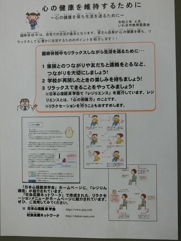 2020年4月30日 08時59分いわき市教育委員会より、このことにつきまして資料の提供がありましたので掲載いたします。