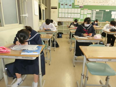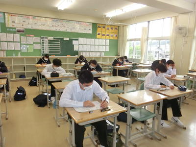 生徒の皆さんの元気な姿を見て、安心しました。各学年とも2つの教室に分かれて「3つの密」を避ける工夫をしています。