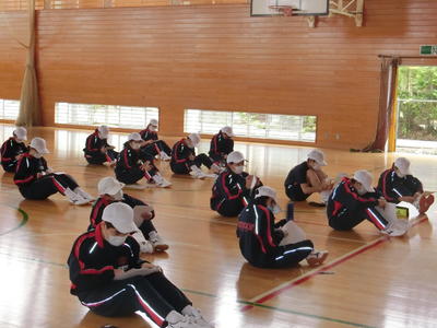 本日より段階的に学校が再開しました。1校時から4校時まで短縮授業で各学年の授業が行われました。1年生の授業の様子を紹介します。