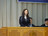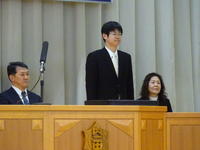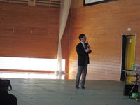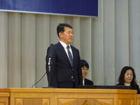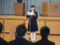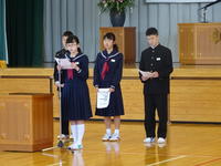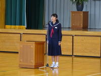 次に、修学旅行実行委員長から修学旅行に臨む決意が発表されました。約束事や公共のマナーを守って修学旅行を成功させますと決意を述べました。