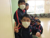 3年生の男子の皆さんが視力を測定中です。カメラに気づいたようです。