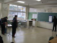 こちらは、3年生の女子の皆さんが視力を測定中です。さすが3年生、待機する態度も立派ですね。