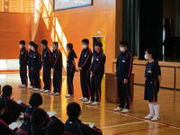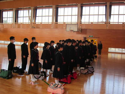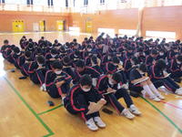 4月23日(火)から25日(木)にかけて、3年生の皆さんは関東方面に修学旅行に出かけます。本日は、明日からの修学旅行を前に結団式が行われました。はじめに校長先生より、楽しく充実した修学旅行にするために次の2つのことについてお話がありました。1つ目は、事故無く安全に3日間過ごして欲しい。2つ目は、みんなが笑顔で、お互いに思いやりの心を持って生活をして欲しい。この2つの約束事を守り思い出に残る修学旅行になることを期待します、とのお話をいただきました。
