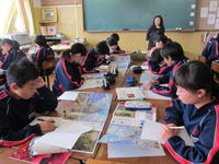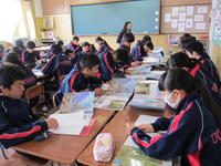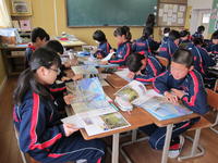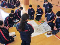 1年生は、社会の地理分野を学習していました。国の名前や位置を調べていました。