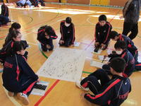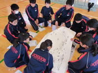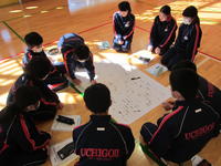 4月は新年度が始まるため、慣れない道路を通行する車や初心者マークを付けた車が増加する時期です。また、本校でも1年生が新しい通学路を通って登下校しています。この時期は、慣れないドライバーや歩行者による交通事故が心配されます。そこで、全校生徒を10グループに分けて登下校時の危険箇所の確認や交通事故防止について話し合いをしました。代表者が話し合いの内容を全体に発表して、全員で振り返りをしました。これからも事故無く、安全に登下校をしましょう。