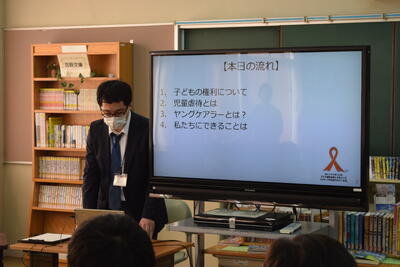 ・今日はいわき市子ども家庭課より講師をお招きして、人権教室を行いました。子どもの人権が侵害されている現状や人権侵害の種類など学びました。