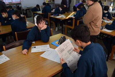 ・グループワークでは、人権がおこる理由や対策について、中学生の視点で考えました。