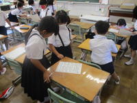 その後、学級では、おのおの夏休みの思い出を先生やお友達に話したり、夏休みの課題を提出したりしていました。各教室にはエアコンが入り、涼やかな環境での時間を過ごしていました。