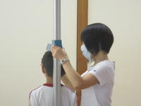 3年生の発育測定が行われました。昨日同様、測定前に養護教諭による保健指導「ゲーム、スマホ、インターネットを上手に使おう」を実施しました。