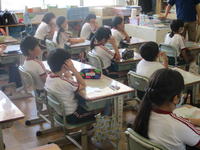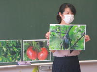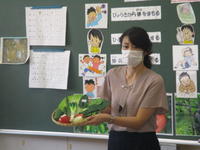 3年生は、勿来学校給食共同調理場栄養士 鬼多見晶子先生を招いて、学級活動「栄養バランスのよい食生活」の学習をしました。子ども達は、野菜の働きについて教えてもらいました。今回の学習で、栄養バランスを考えた野菜の取り方の工夫を考えていました。ちなみに3年生が1日にとるべき野菜の量は300gだそうです。給食は、その1/3から1/2をとれるように献立を考えているそうです。