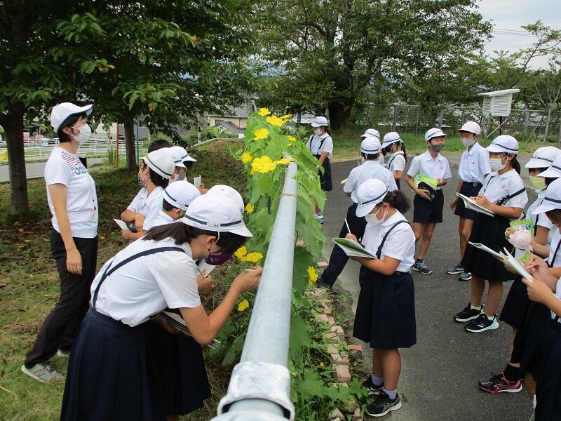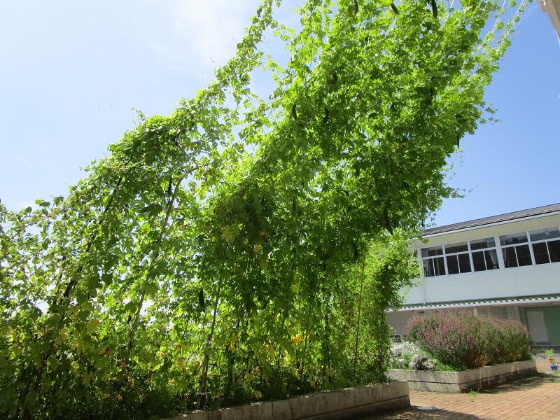 水分をとりながら熱中症にも気をつけながら取り組んでいます。本校ではグリーンカーテンで暑さ対策も行っています!