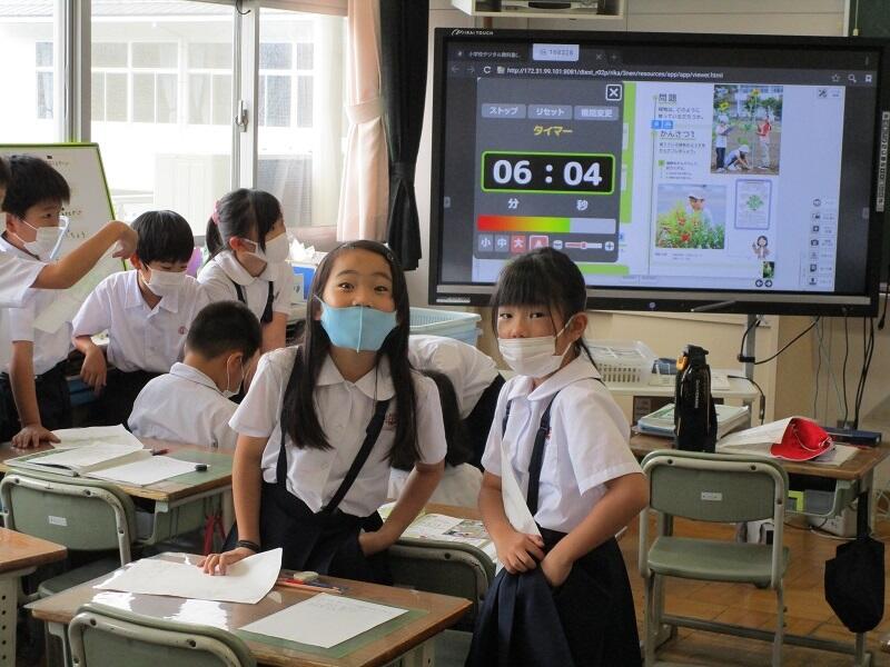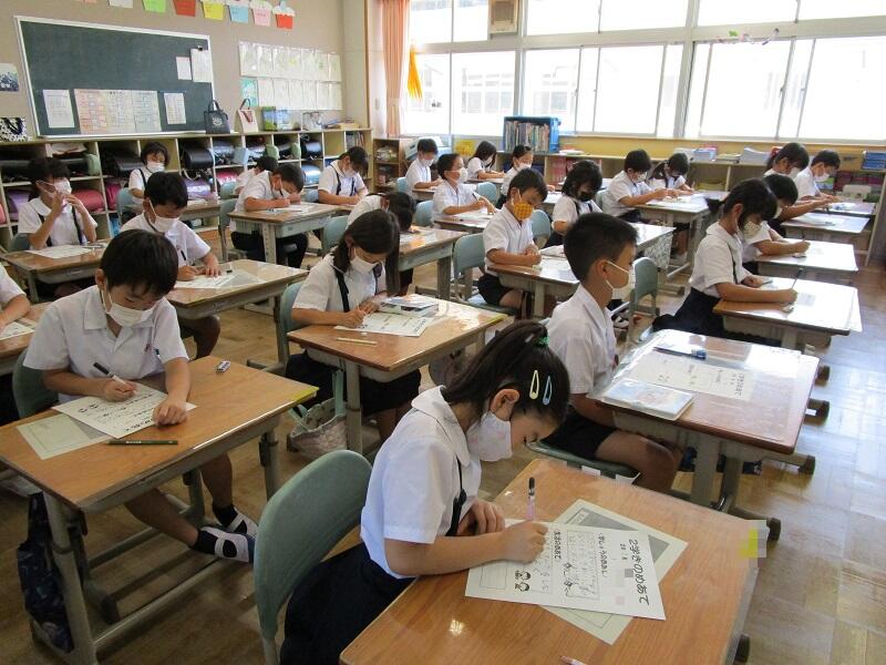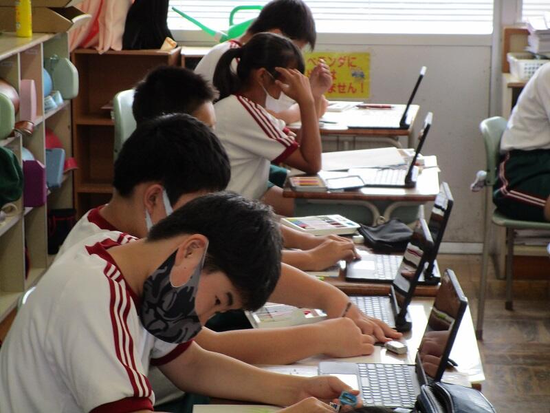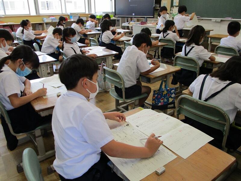 授業ではエアコンをかけながら、水分を取りながら、換気をしながら、体調管理をしながら・・・いろいろな対策を取り、植田小の子どもたちはがんばっていました。