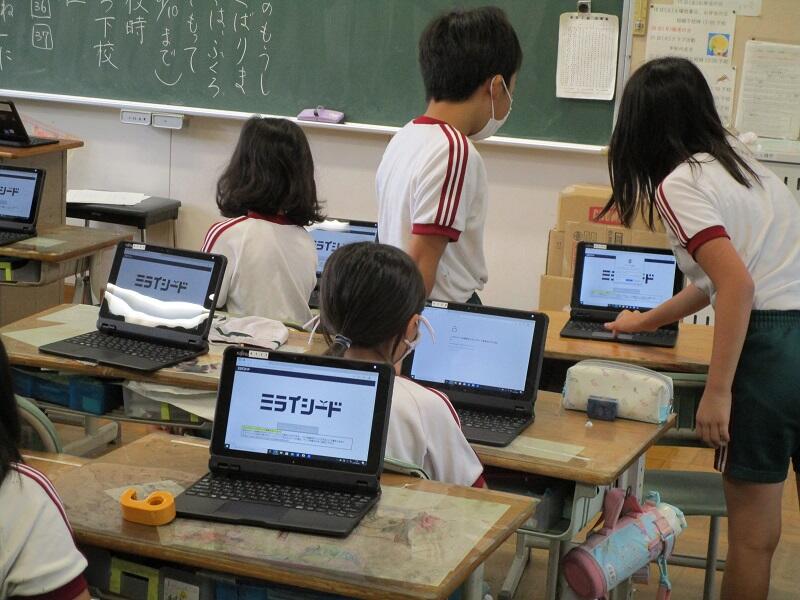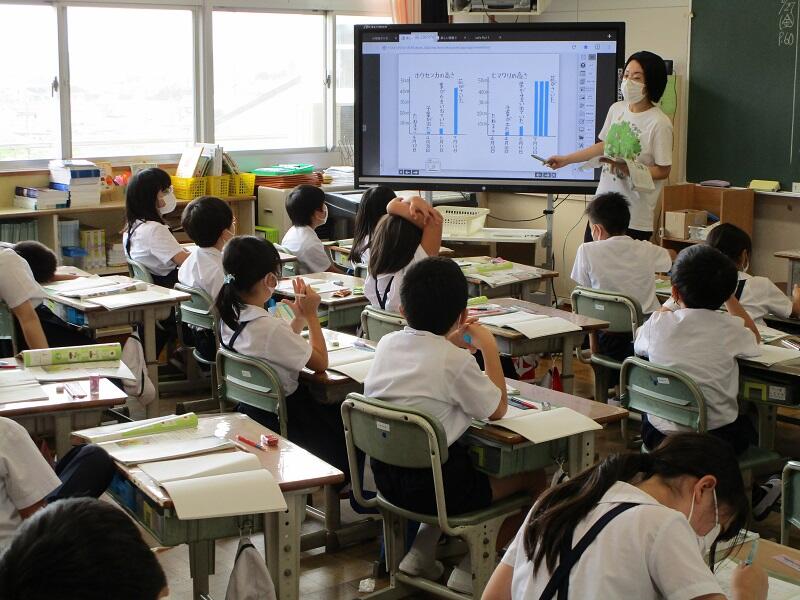 また、6年生ではタブレットを使って授業を行っている様子も見られました。