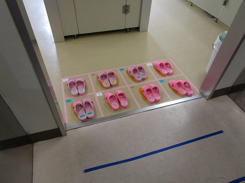 校舎内をみると、トイレのサンダルもしっかり並べてあります。みんなで気をつけながら環境も大切にしています。