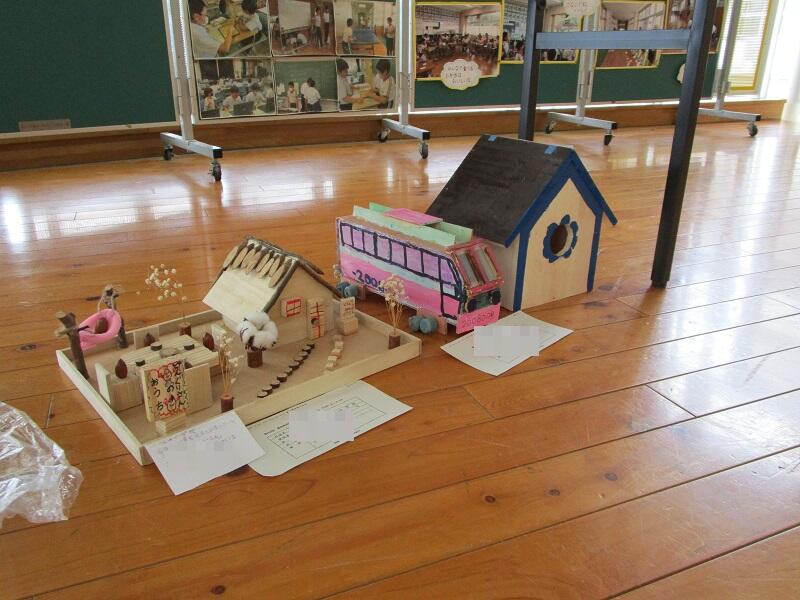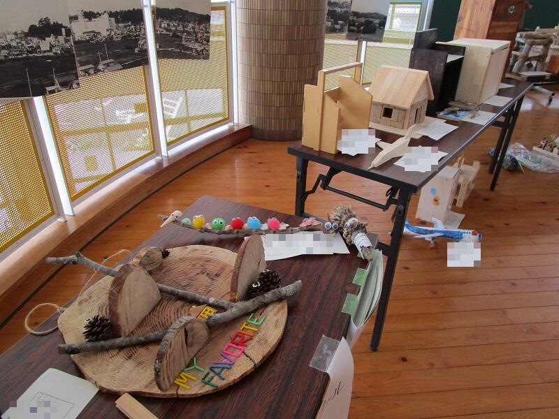 夏休みの課題のひとつであった「木工作品」も並べてありました。とても上手な作品ばかりです。