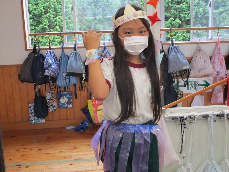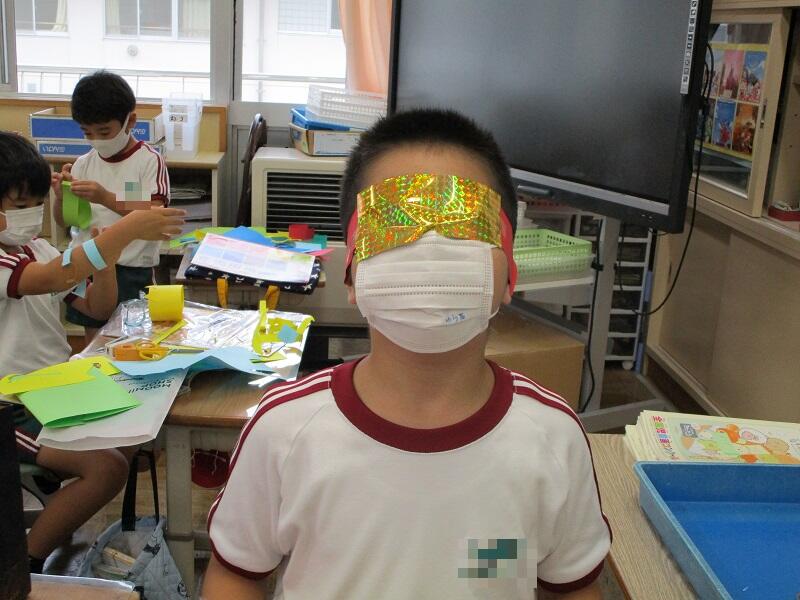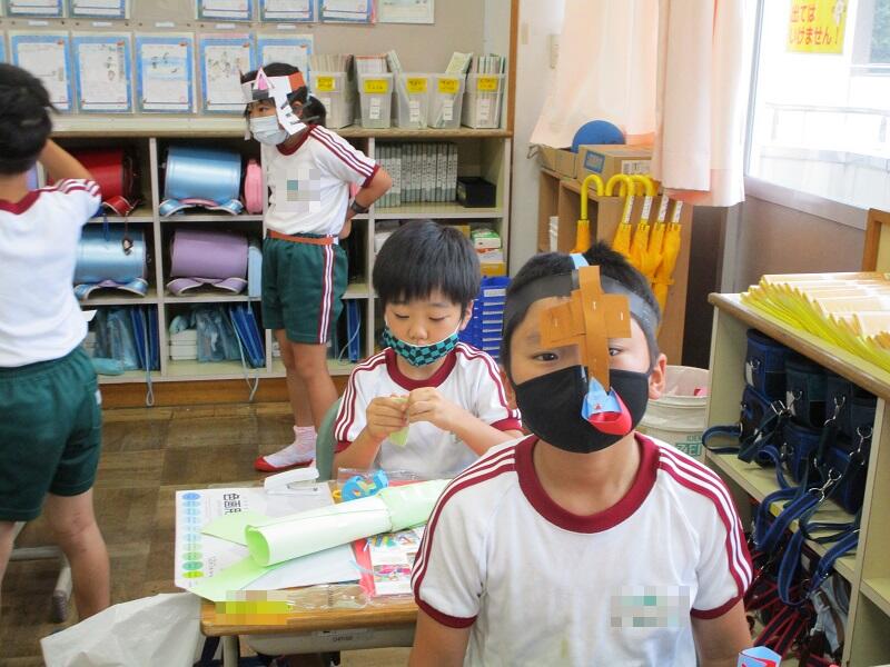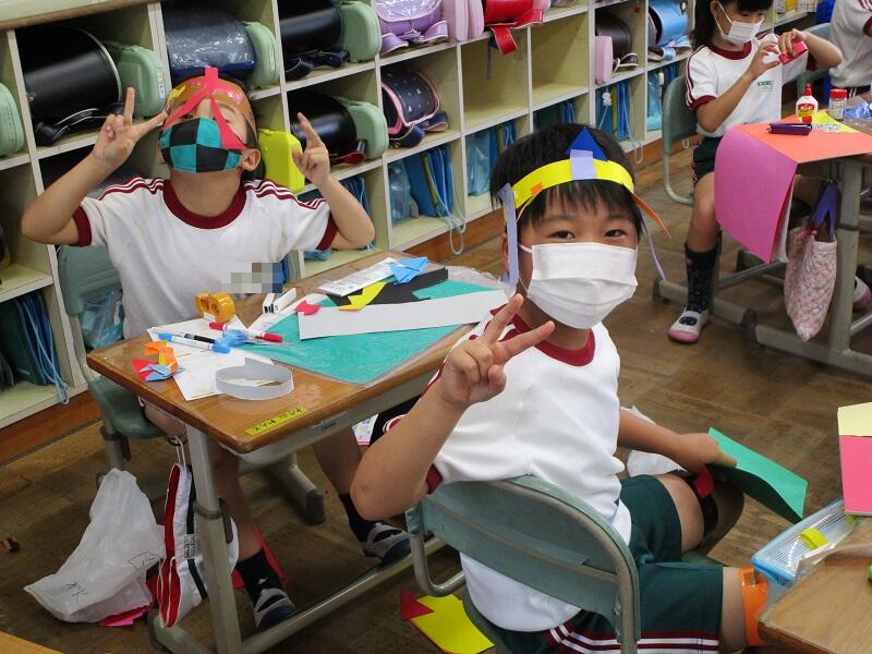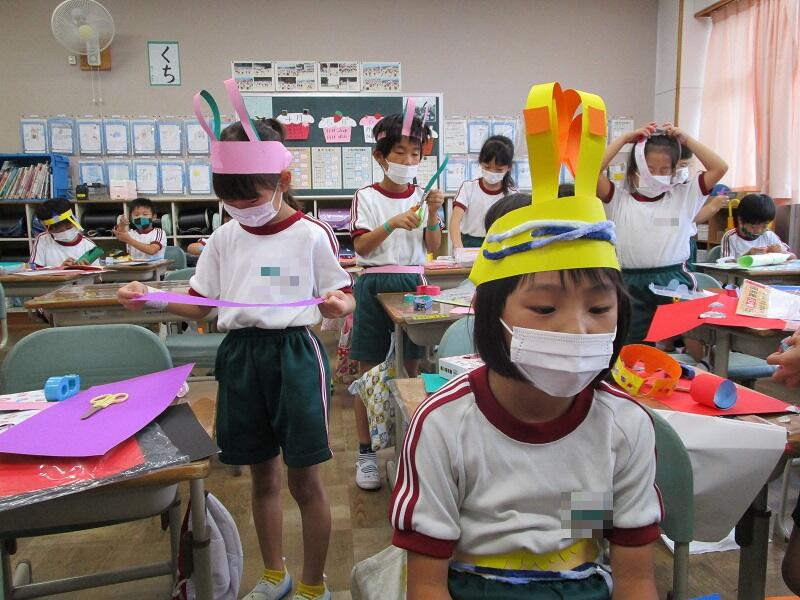 2年生では「わっかでへんしん!」というめあてでわっかを作って作品作りに挑戦していました。