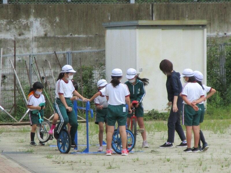 ボール運動や高鉄棒、一輪車などで楽しく過ごしていました。