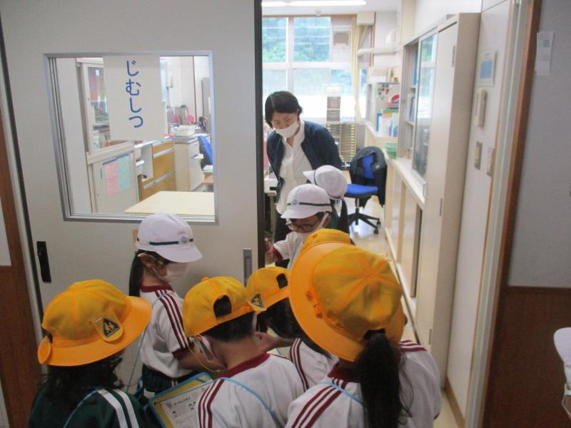 今日は2~4校時に1、2年生が「学校たんけん」を行いました。