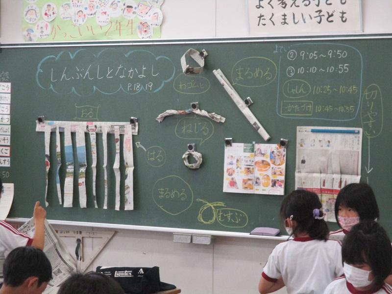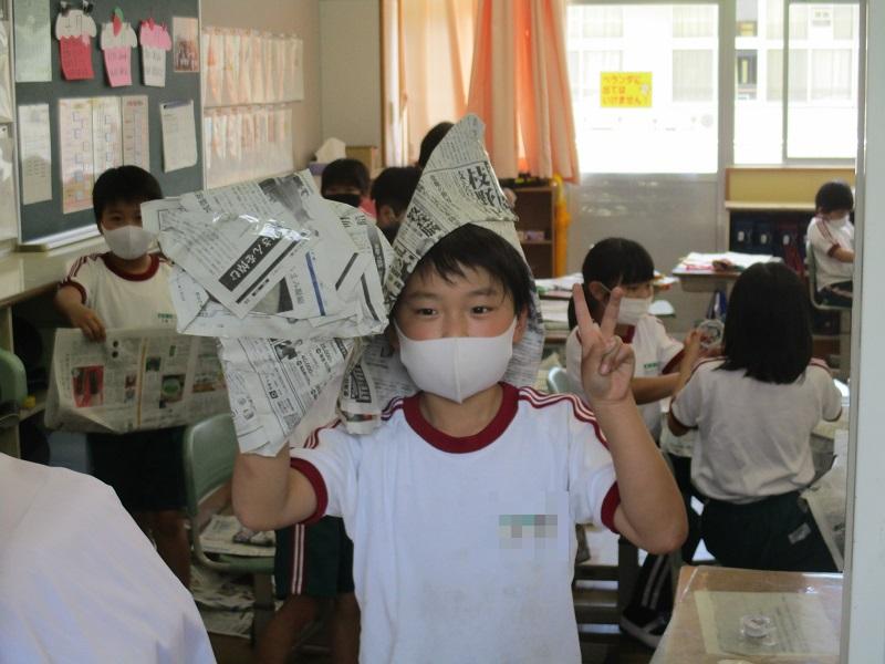 2年生は「しんぶんしとなかよし」の単元を行っていました。作ったものを見せてくれました。