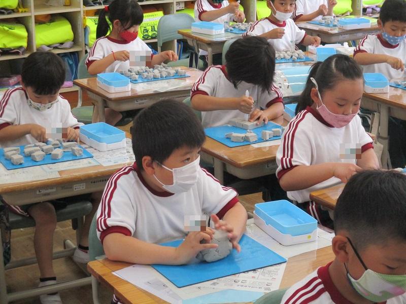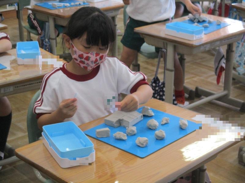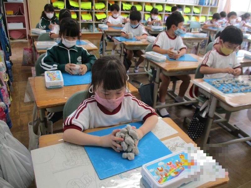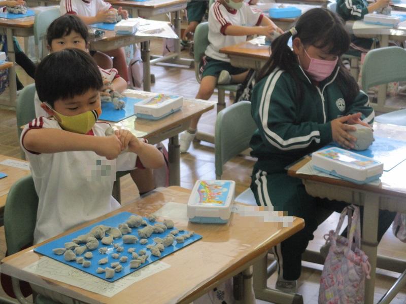 1年生は粘土の授業を行っていました。ちぎったり、まとめたり・・・いろいろな形に挑戦していました。