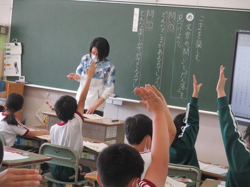 3年生は積極的に挙手し、先生も発問に答えていました。