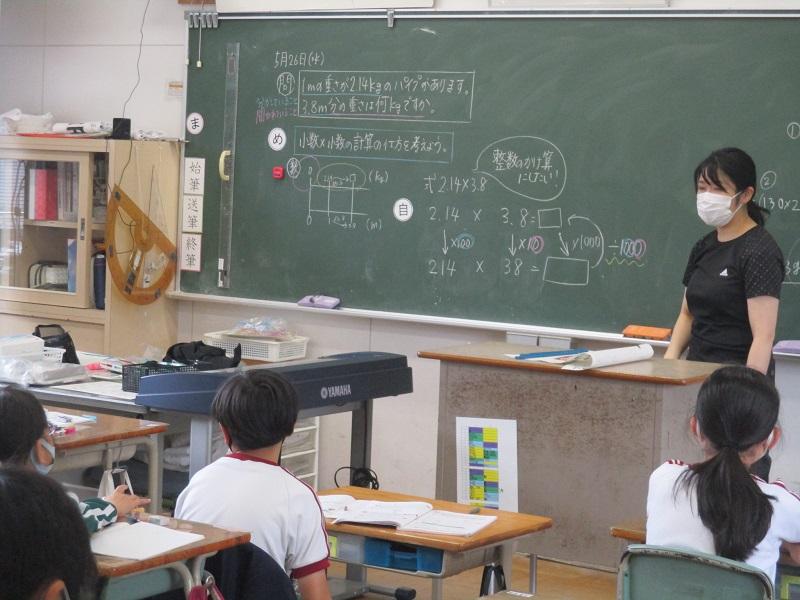 5年生は少数のかけ算の学習を行っていました。先生の発問に素早く答えていました!
