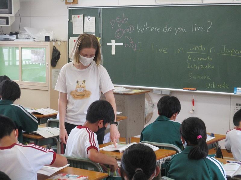 高学年は外国語の授業を行っていました。特に6年生はALTの先生と楽しく授業を進めていました。