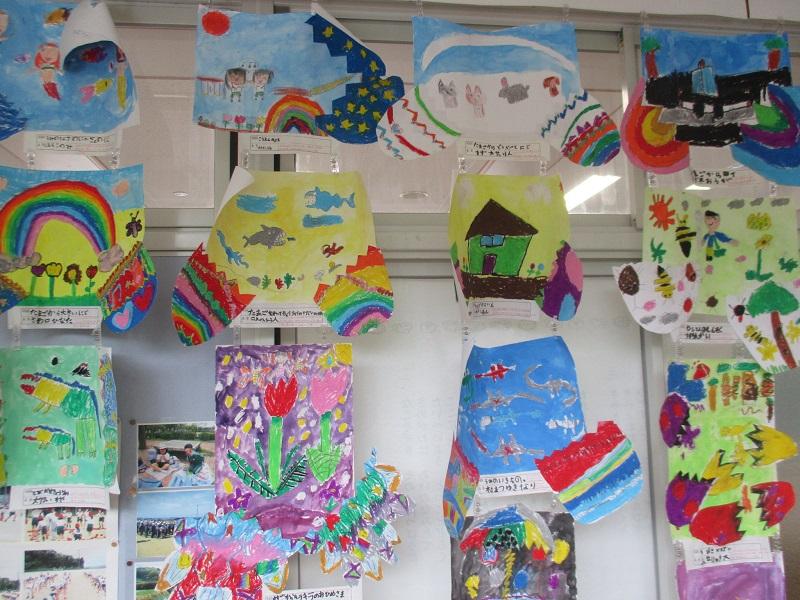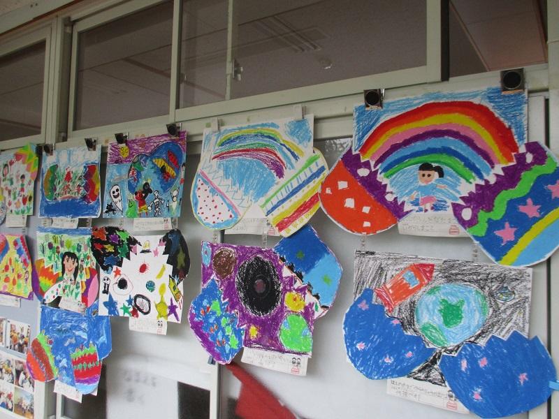 各クラスの廊下には子どもたちのアイディアが盛り込まれた作品が掲示されています!