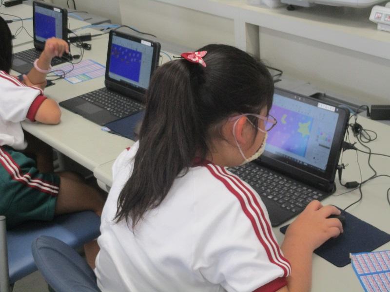 スタンプなどを使いながら、上手にタブレットで絵を描いていました。少しずつですが、タブレットの使い方を学んでいます。