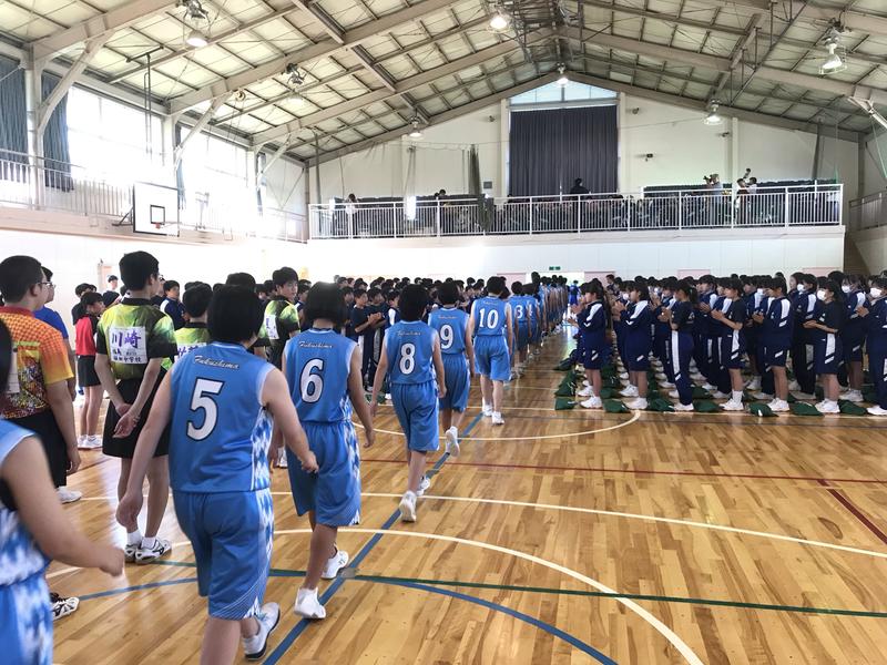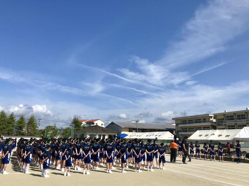 晴天の下、「完全燃焼 ~涙は汗を生み、汗は涙を生む~」をスローガンとした、令和元年度植田中学校体育祭が始まりました。