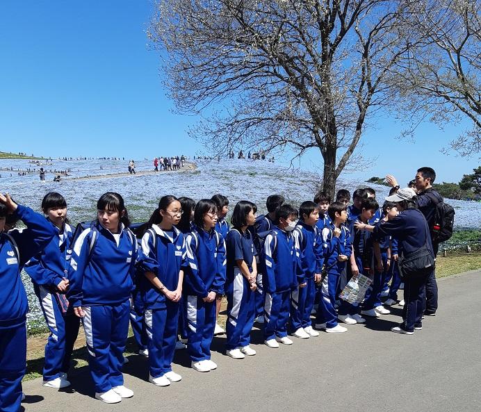 1年生は、ネモフィラの咲く「みはらしの丘」が大人気の国営ひたち海浜公園に移動しました。