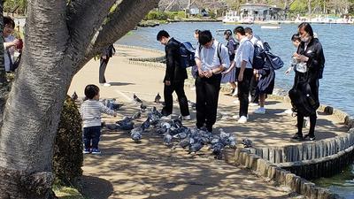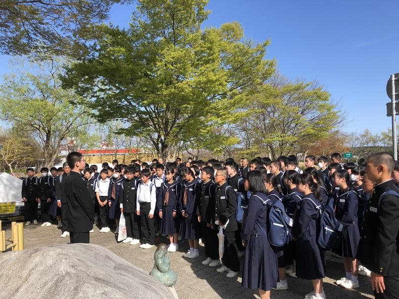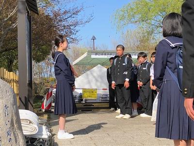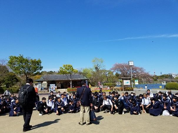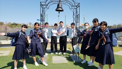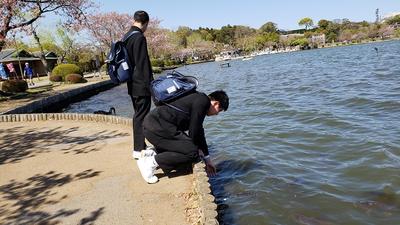 班別自主研修をしていた2年生ですが、無事に全部の班が集合時刻の4分前には到着し、集合場所の千波湖にそろいました。予定通りに班別自主研修を行い、時間通りに集合できた2年生のみなさん、とても立派ですね!