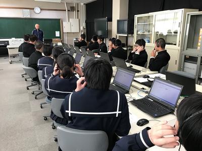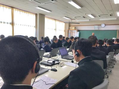 写真は、英語の「話すこと」の問題の説明を受けている様子です。