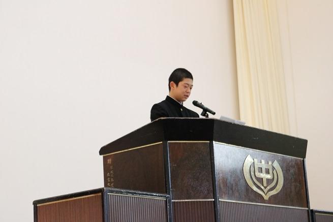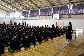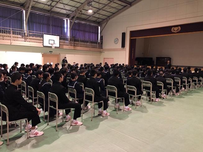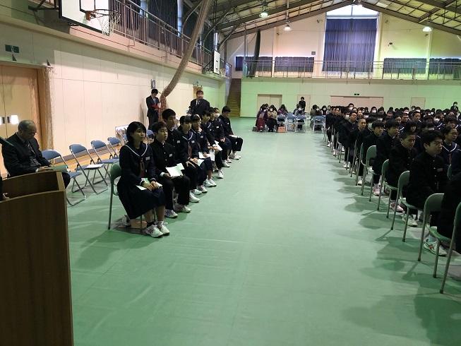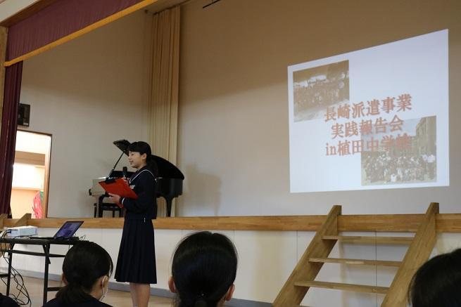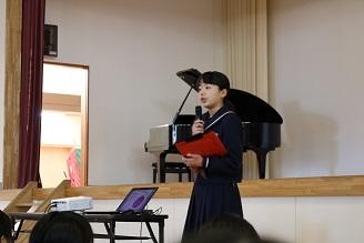 終業式終了後には、生徒会長より「生徒会長サミット」での長崎派遣事業の報告がありました。