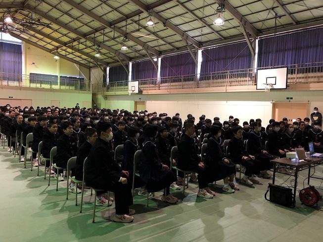 本日、来年度の修学旅行説明会が、保護者も参加し行われています。生徒達も皆真剣に聞いています。